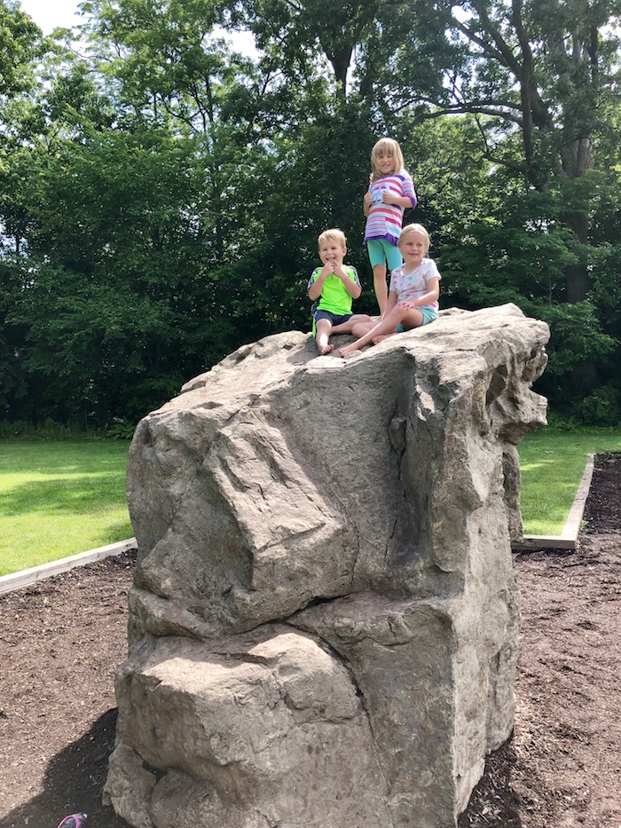 Mill Creek Park North is a 2.15 acre park and has a small play structure and several swings. However, my kid’s favorite feature was a huge fake rock they could climb. Definitely was a bit of challenge for my young crew, but they were SO happy once they reached the top!