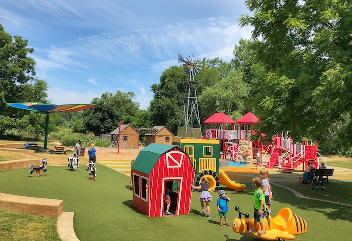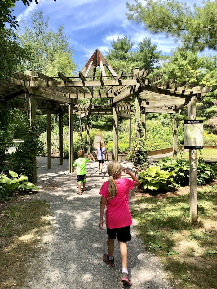 Just outside the perimeter of the park was a beautiful garden and walking trails. We visited on a hot day, so the kids were ecstatic to get wet by the sprinklers near the garden. The raised garden had mini trails throughout, which was fun for kids since it felt like a maze.