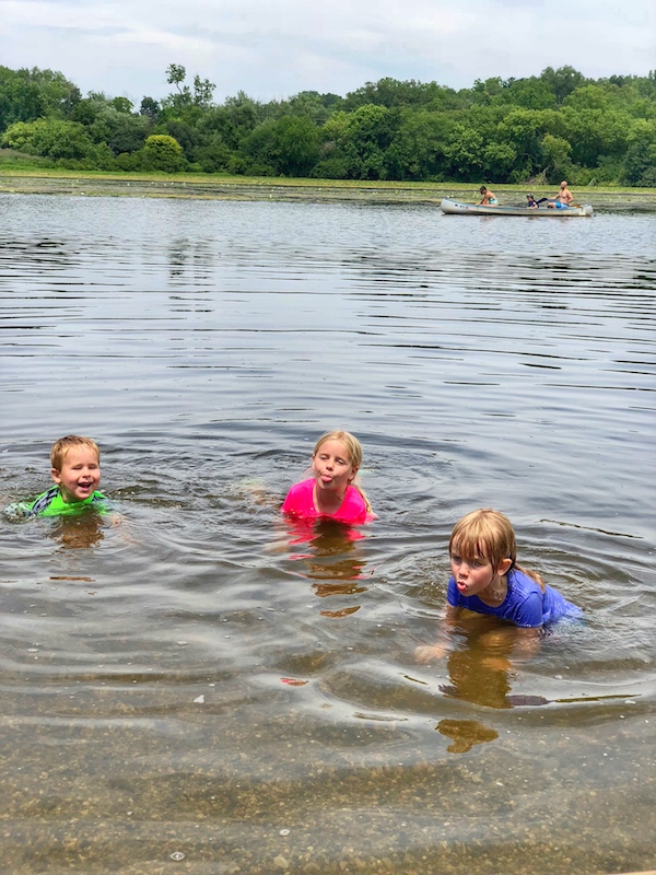 However, when my kids saw the water, their eyes lit up. I wouldn’t say this is a great place to swim — it’s a pea gavel entry, and there is goose poop on the ground — but for kids that need to cool off, it’s perfect.