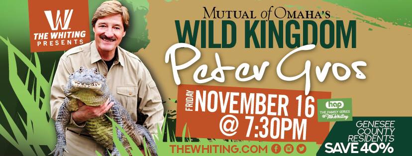Future zoologists, conservationists, and scientists will not want to miss Animal Planet’s own Peter Gros as he stars in his own Wild Kingdom show, coming to The Whiting on Friday, November 16 at 7:30 p.m.